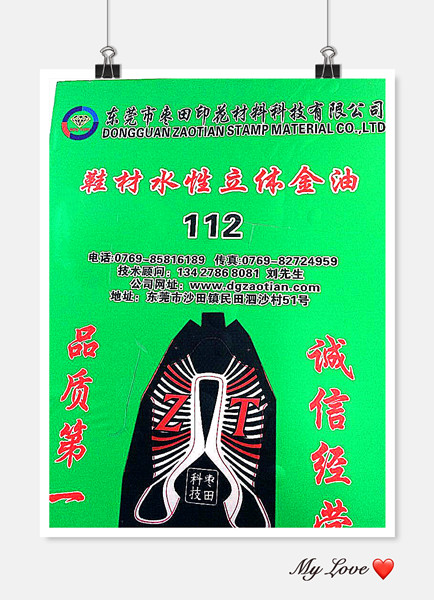 东莞市枣田印花材料科技有限公司 地址:东莞市沙田镇西太隆工业区 电话:0769-85816189 手机:刘先生 13427868081 手机:朱小姐 13798946363 E-mail:kiasa@dgzaotian.com 网站:www.dgzaotian.com/